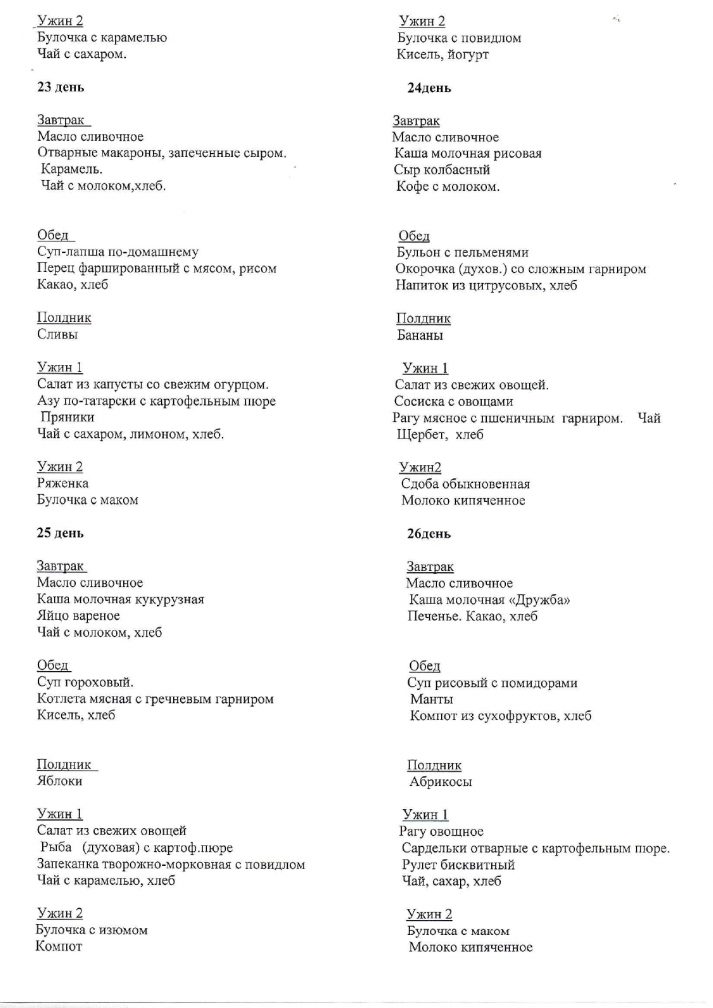 2025–2026 оқу жылына арналған балалардың маусымдық перспективалық тамақтану мәзірі жаз-күз (4 апта)