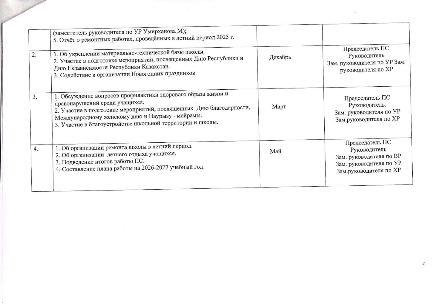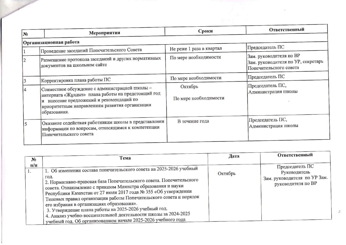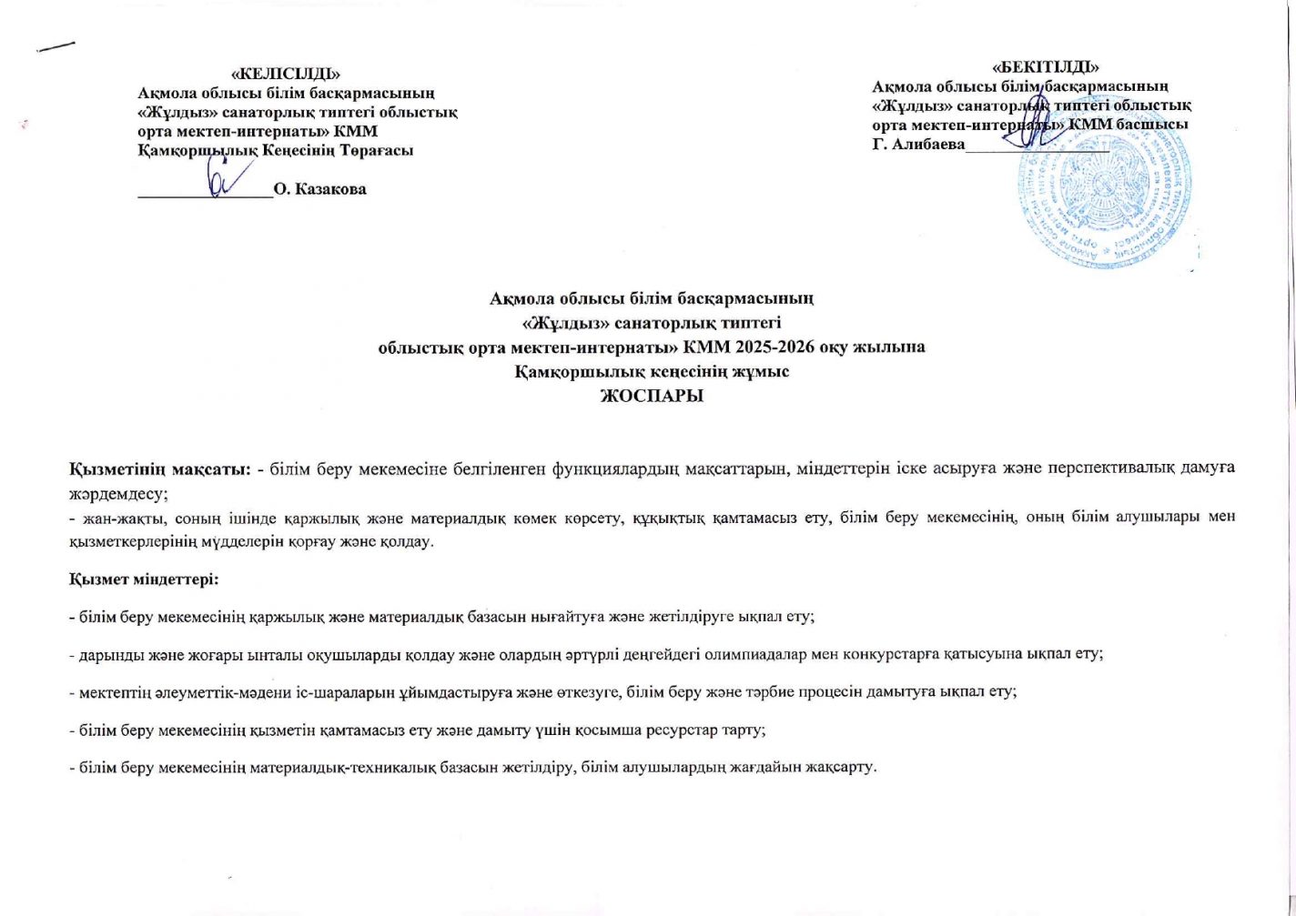 Қамқоршылық кеңесінің жұмыс жоспары 2025-2026 оқу жылына